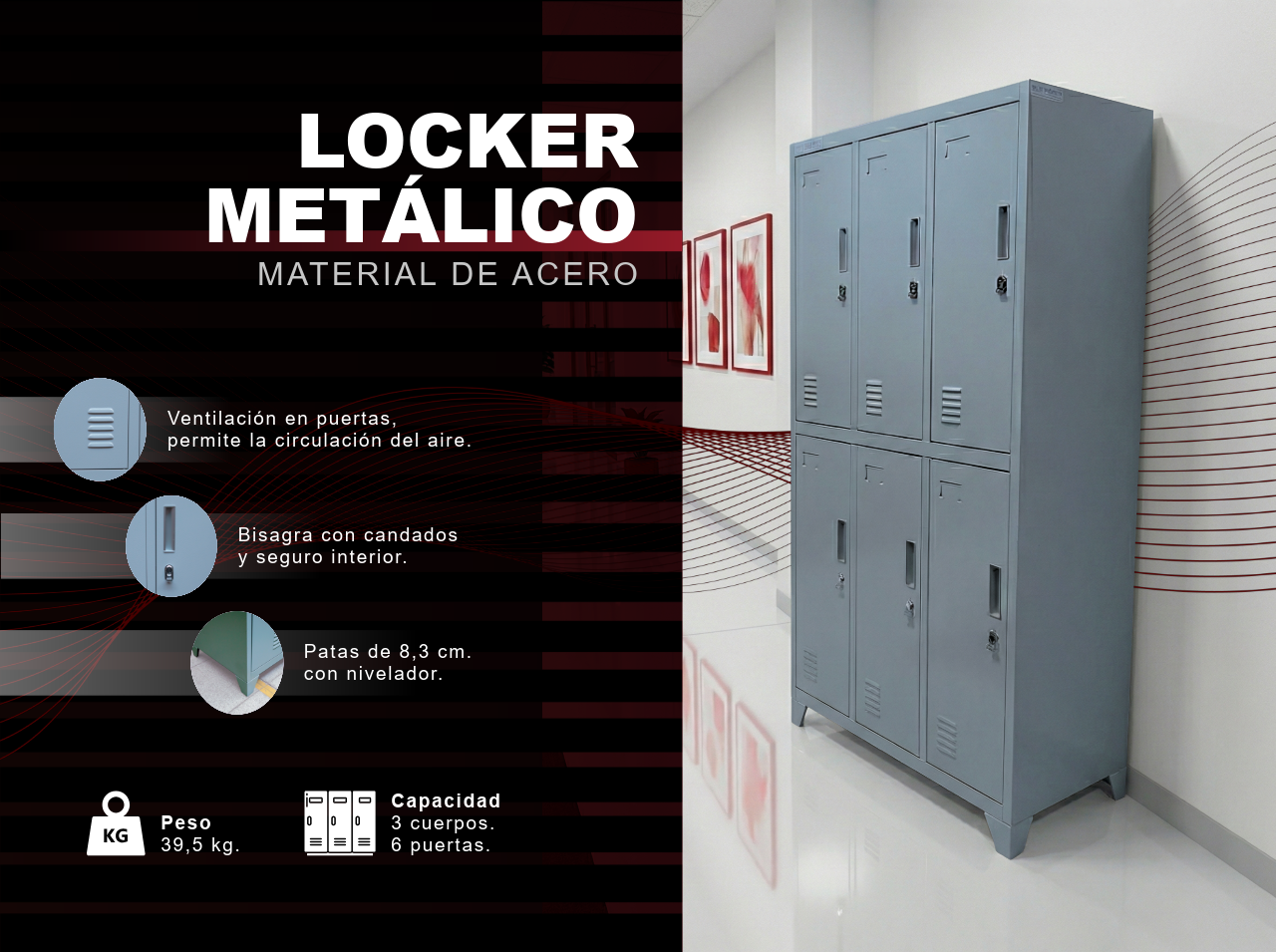 Renueva tus espacios con nuestros armarios metálicos, disponibles con 2 y 4 puertas y también con vitrinas.