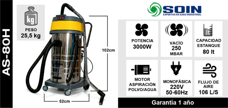 ASPIRADORA POLVO Y AGUA SOIN 80 LITROS CON FILTRO HEPA