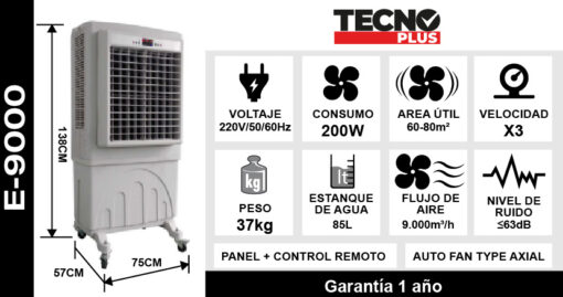 Su eficiencia energética de solo 200 W y su potente rendimiento lo convierten en la solución ideal para talleres, bodegas y grandes oficinas, garantizando un ambiente fresco y productivo.