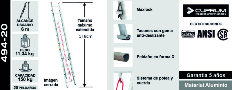 ESCALERA ALUMINIO TELESCOPICA 20 Pelda os 5.18M