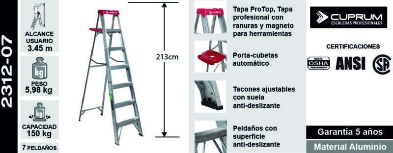 | Altura total de la escalera (m) | 2.13 |