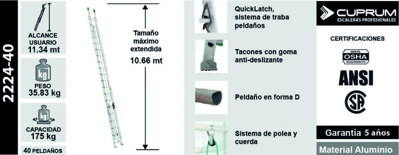 ESC. EXTENSION ALUMINIO 40 PELDA OS 10.66M