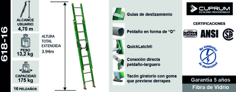 CARACTERISTICAS DE ESCALERA TELESCOPICA FIBRA DE VIDRIO 618-16