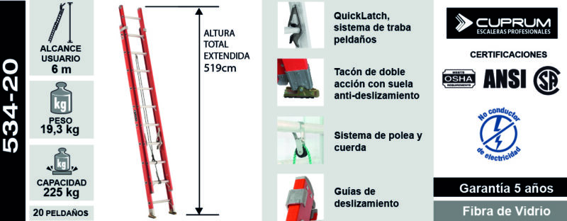 ESCALERA TELESCÓPICA FIBRA DE VIDRIO 40 PELDAÑOS
