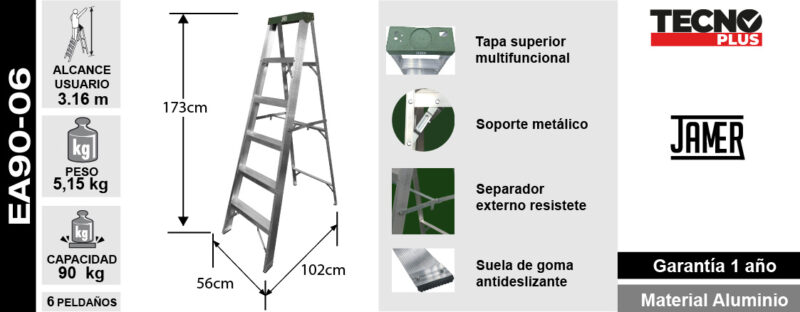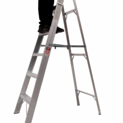 Esta escalera de tijera de 6 peldaños permite un acceso máximo de 316 cm, ideal para instalaciones complejas y mantenimiento de techo alto. Su diseño en aluminio garantiza un rendimiento profesional superior sin comprometer la ligereza de una herramienta industrial.