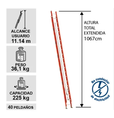 Escalera telescópica Fibra de Vidrio, 40 Peldaños.
